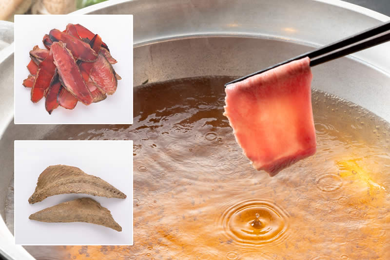 牛タンしゃぶしゃぶに付属する特製出汁は鰹節・サバ節をふんだんに使った当店自慢の味です。しっかりとした風味ながらも主張しすぎることはなく、牛タンや野菜の美味しさを引き立ててくれます。