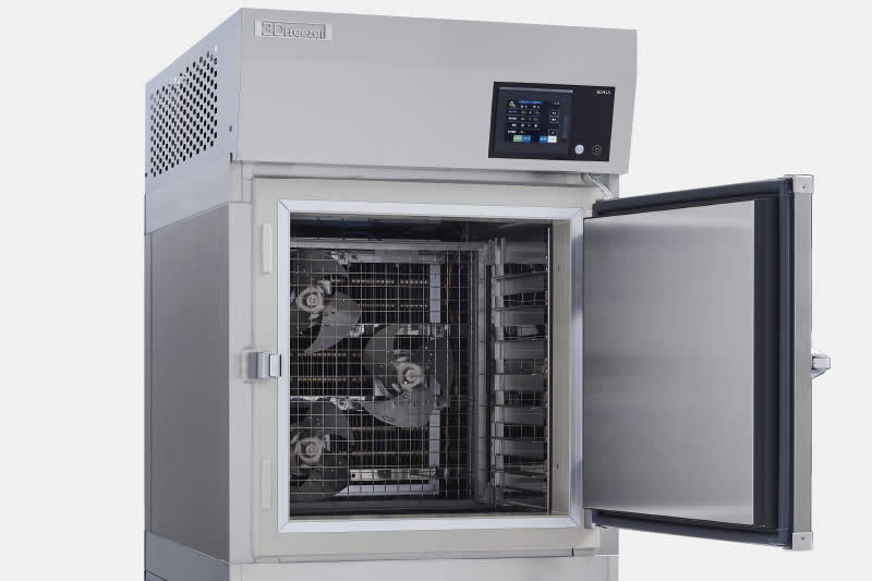 食品の水分をほとんど奪わないよう、湿度を保った冷気で均一に優しく包み込むように急速冷凍します。